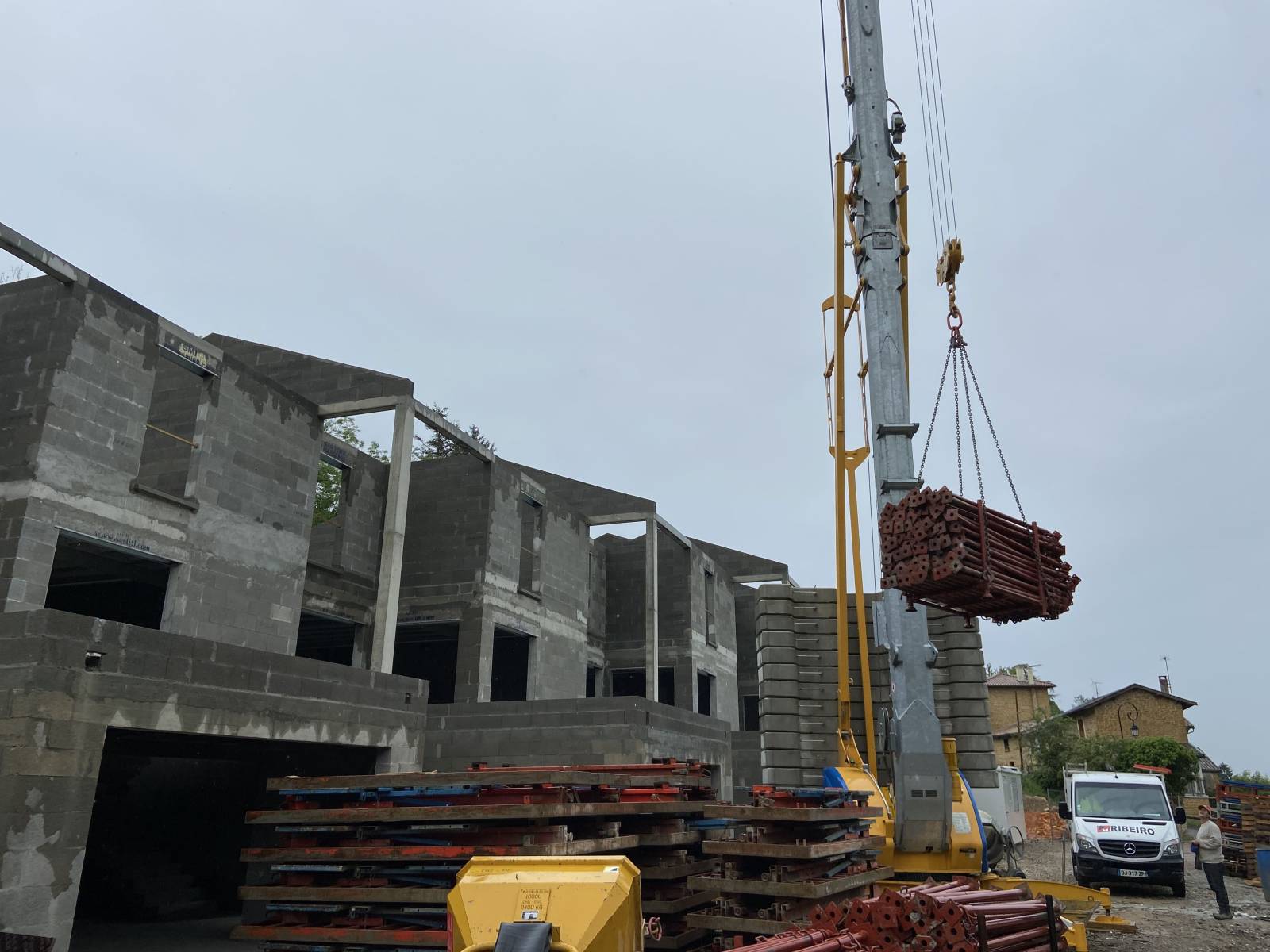 Mise en place d'une de nos grues pour la construction de ce bâtiment.